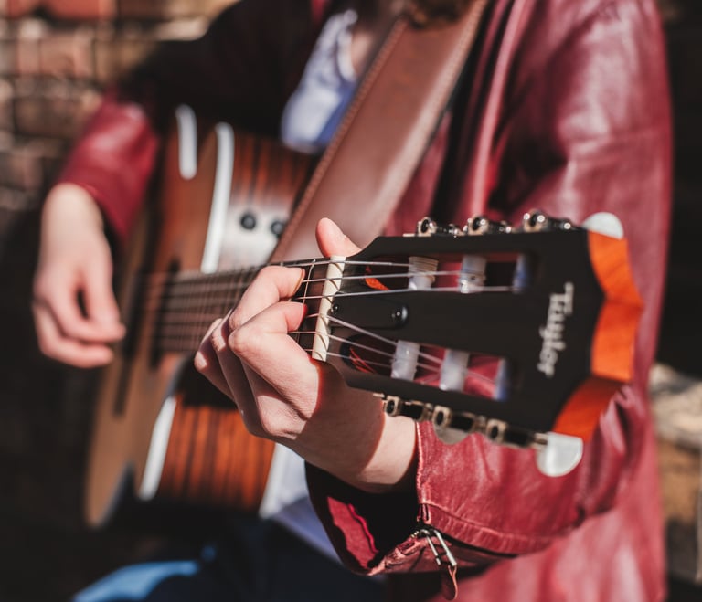 Schon als Kind war Musik für mich etwas Magisches - egal ob beim Hören, Tanzen oder selbst Musizieren. Mit den ersten Tönen und Akkorden auf der Gitarre hat alles angefangen, und schnell wurde daraus eine echte Leidenschaft. Seitdem ist die Gitarre ein fester Teil meines Lebens. Durch kleine Auftritte habe ich mit der Zeit gemerkt, wie schön es ist, Musik nicht nur für micht, sondern auch für andere Menschen zu machen.